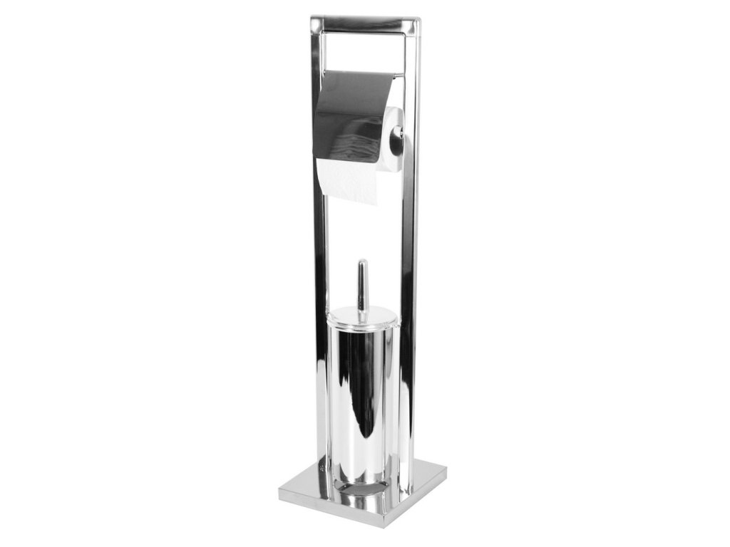 Elegantní stojan na toaletní papír s integrovanou wc sadou, lesklý chrom.Rozměry 19 x 19 x 82 cm.