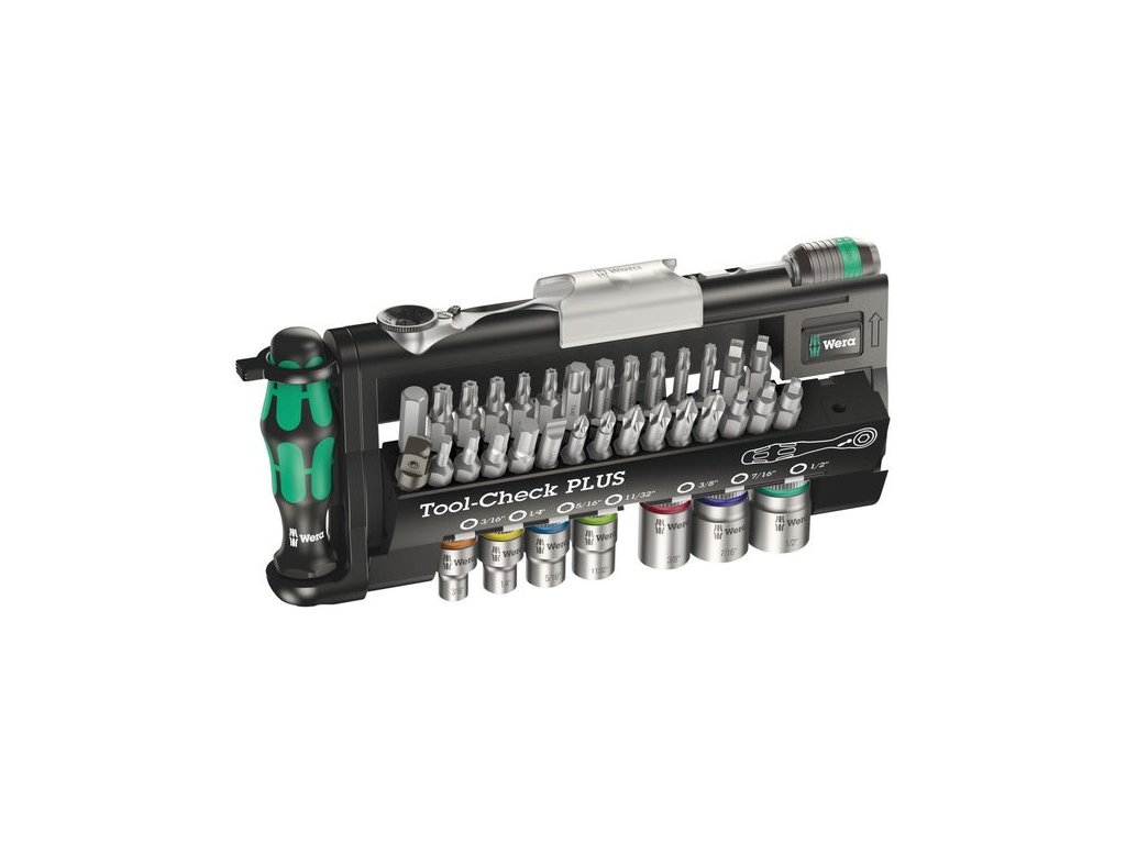 Sada nářadí WERA 056491 Tool-Check PLUS Imperial (39 dílů)Kombinace palcového nářadí tvořená 1/4" ráčnou s ořechy Zyklop, 1/4" bity a ručním držákem na minimální ploše.