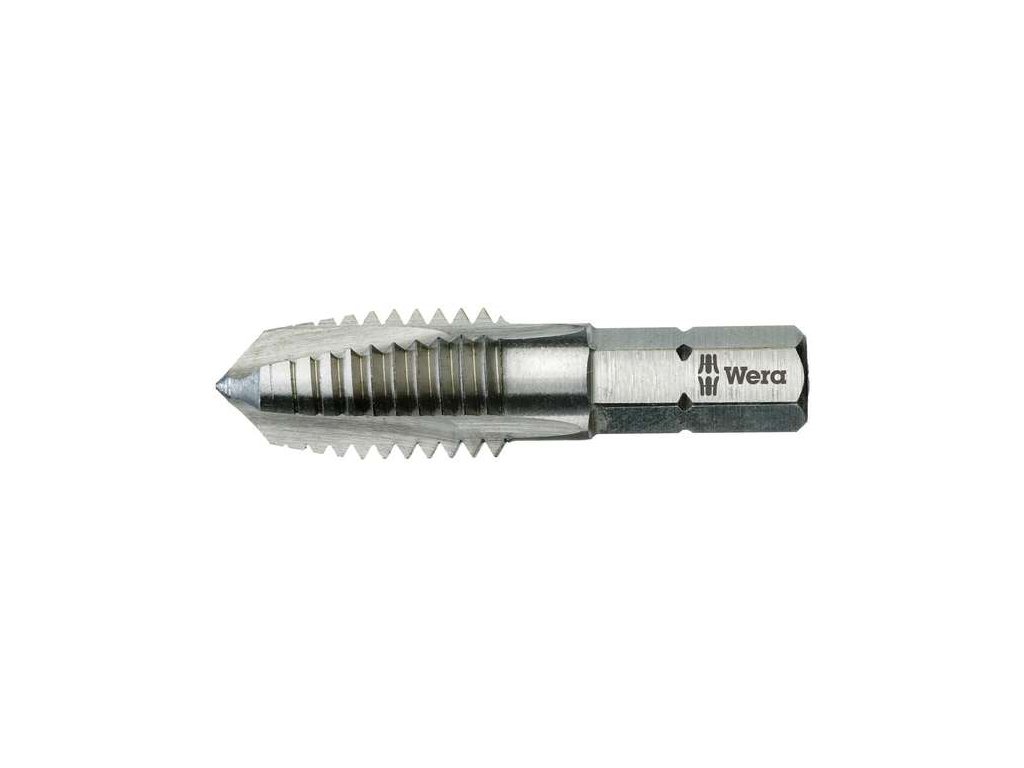 Krátký strojní závitník Wera s bitovým uchycením (vnější šestihran 1/4")Kvalitní bit Wera s závitníkem vhodným řezání metrických závitů