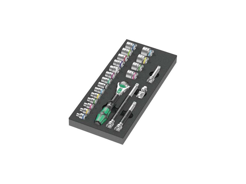Pěnová vložka Wera pro dílenský vozík s ráčnou Zyklop 3/8" s nástrčnými hlavicemi - 23 dílný Set 1Odolná pěnová vložka, každý nástroj má své pevné místo - 2barevná, absence