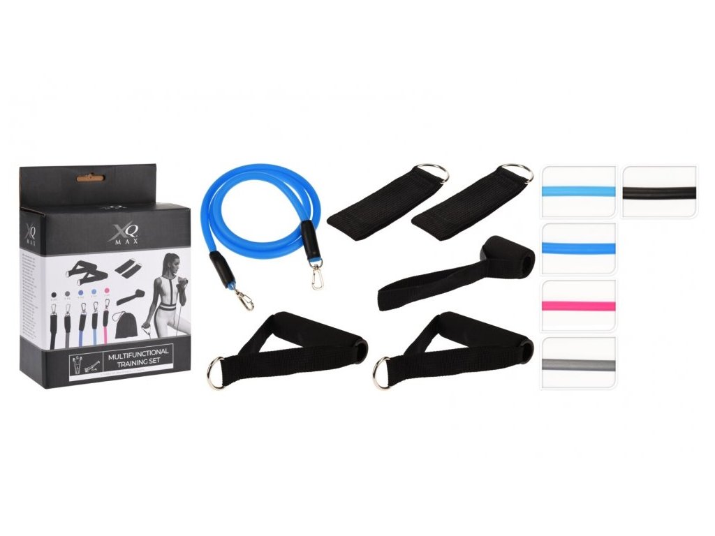 - nastavitelný gumový expandér XQMAX s příslušenstvím- sada obsahuje celkem 11 kusů:- 5 x gumový expandér s různým odporem- 2 x jednoruční úchopy- 2 x popruh na kotník- kotva do dveří- přenosný obal- všestranný gumový posilovač pro cvičení celého těla- 5 posilovacích expandérů s různou zátěží lze libovolně kombinovat a nastavit tak různé obtížnosti cvičení- součástí sady jsou ruční úchopy a také popruhy na kotníky, díky čemuž se tato sada stává komplexní pomůckou na procvičení celého těla- kotva do dveří ještě více zefektivní různé varianty cviků- gumový expandér je velmi oblíbená pomůcka do domácí posilovnyDoplňkové parametry
