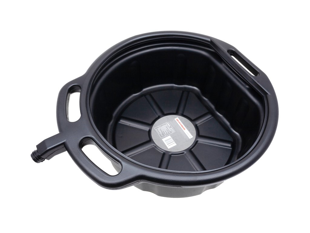 Vana určená pro snadné zachycení vyjetého motorového oleje a jiných tekutin při jejich výpusti z vozidla. Snadná manipulace díky 3 madlům, vyprazdňování obsahu vaničky ulehčuje výlevka se zahnutým koncem vybavená závitem pro našroubování např. ohebné výlevky (není součástí).