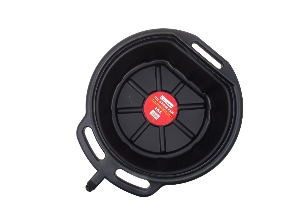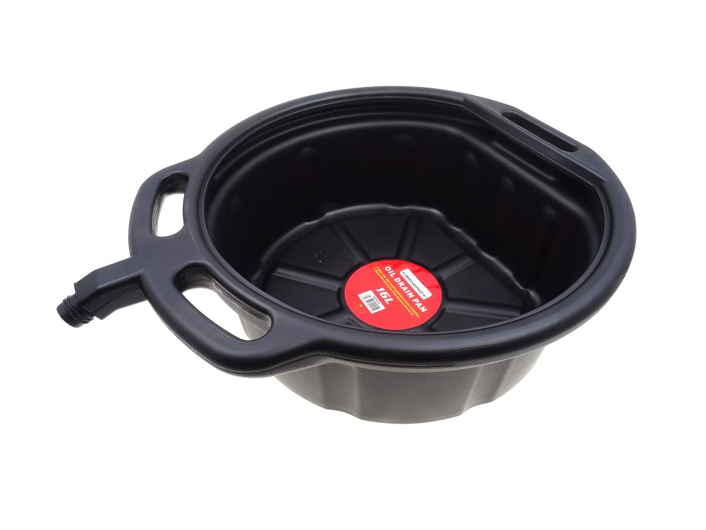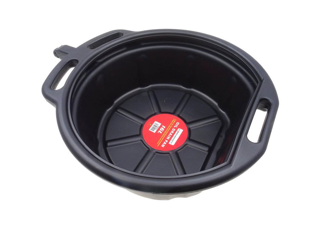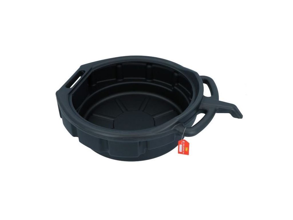 Určeno pro snadné zachycení vyjetého motorového oleje a jiných tekutin při jejich výpusti z vozidla. Snadná manipulace díky 3 madlům, vylévání obsahu ulehčuje výlevka se zahnutým koncem.