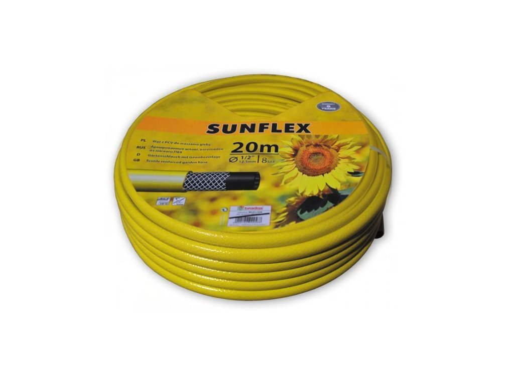 Třívrstvá, vyztužená zahradní hadice SUNFLEX je vyrobena z měkčeného PVC.