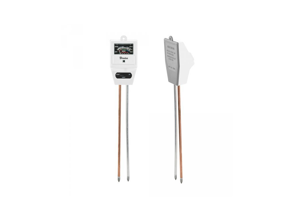 - Zařízení, které umožňuje měřit kyselost a vlhkost půdy i intenzitu slunečního záření