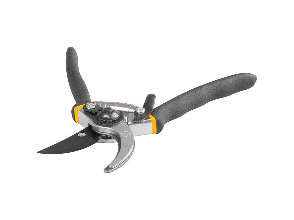 Dvoučepelové nůžky P0803, 210 mm, zahradní, jejich tvar usnadňuje manipulaci s křovinami a větvemi, snadné odstranění, bez velké námahy.