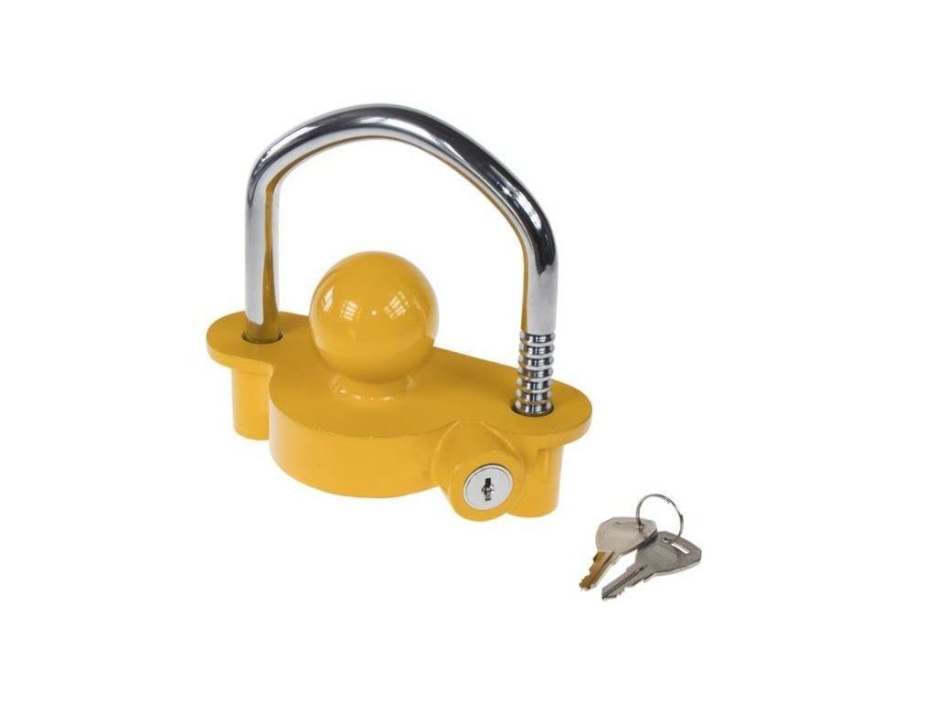 Zámek závěsu je jednou z nezbytných výbav každého majitele přívěsu. Snadno se používá, a účinně chrání před nežádoucím použitím nebo krádeží. Po nasazení ochrany je nemožné zavěsit přívěs na hák - díky čemuž bude přívěs bezpečný.Ochrana z odlitku , práškově lakovaná. Kulička o průměru 50 mm . Uzavírací třmen je dodatečně zesílen .