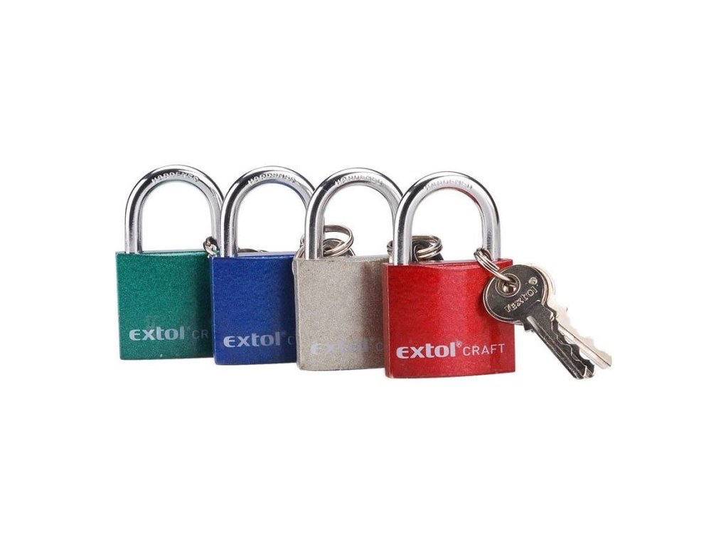 Zámek visací litinový barevný, 32mm, EXTOL CRAFT, 77010 Uzamykatelný bez použití klíče zacvaknutím, 3 klíčeDoplňkové parametry