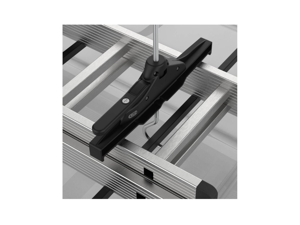 Rozměry (LxWxH): 457x47x427 mm Rozměry - zarážka - (LxWxH): 457x47x129 mm Rozměry - hák - (LxWxH): 93x12x425 mm Váha: 2,05 kg Max. zátěž: 40 kg Pro žebříky do šířky: 440 mm Min. výška uchycení: 95 mm Max. výška uchycení: 285 mm Rozevření háku: 72 mm Pro střešní nosiče do: 60x40 mm nebo 20x60 mm Anti-theft: Ano TÜV GS: Ano Crash Test: Ano