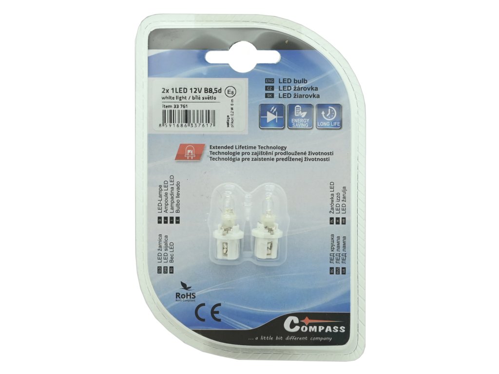 Žárovka 1LED 12V B8,5d bílá 2ks
