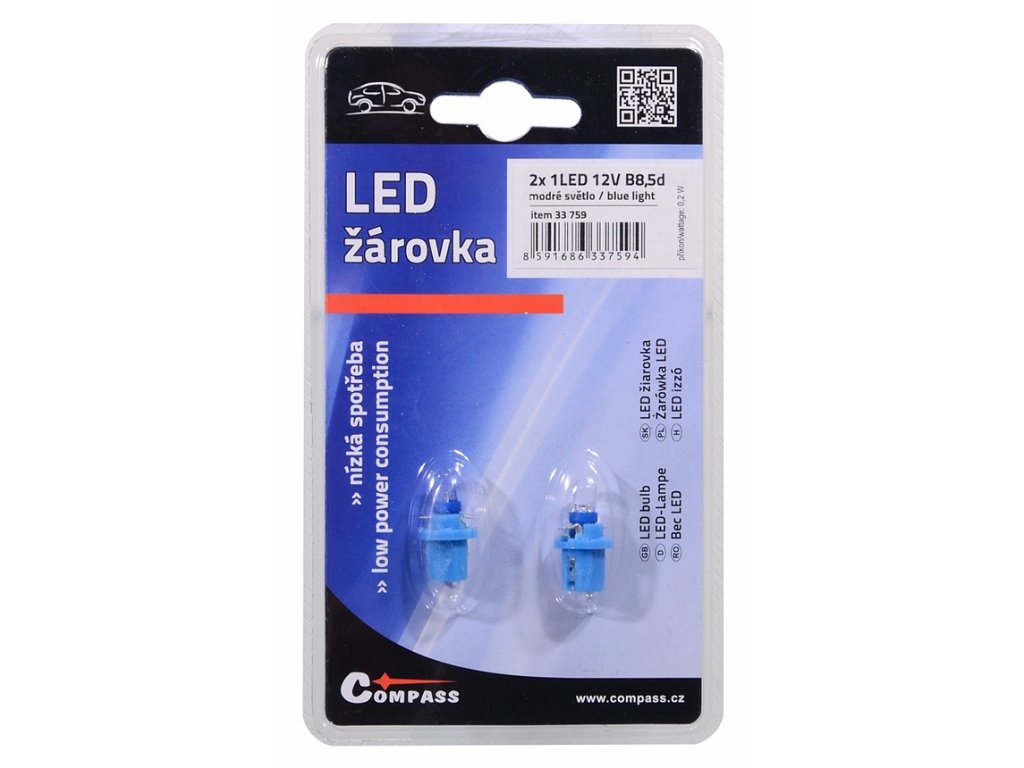 Žárovka 1LED 12V B8,5d modrá 2ks