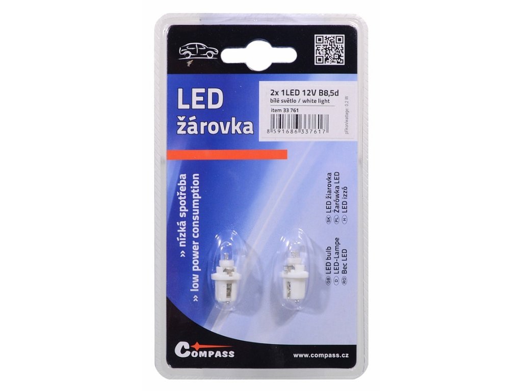 Žárovka 1LED 12V B8,5d bílá 2ks