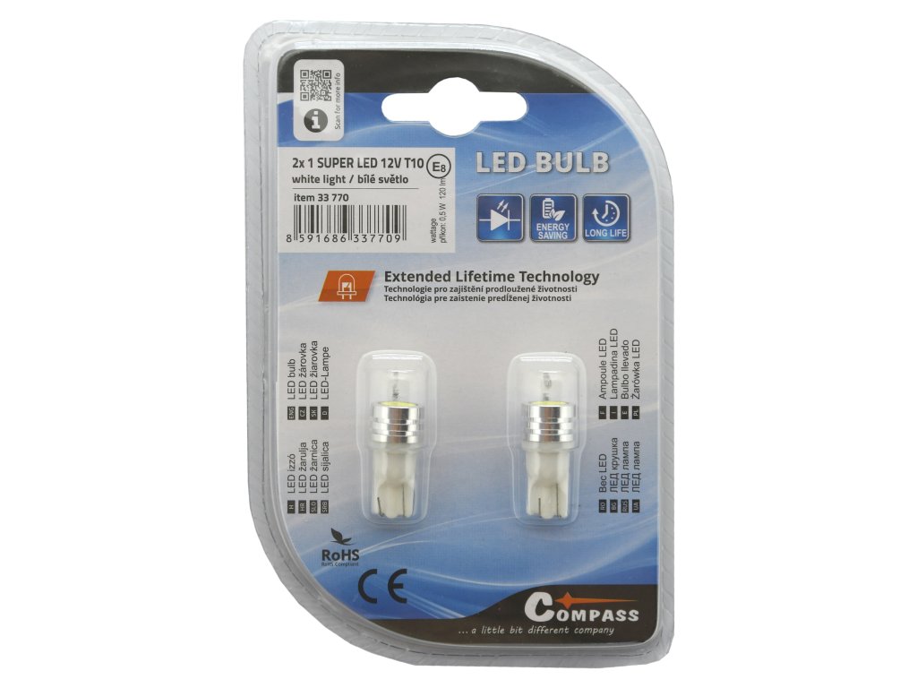 Žárovka 1SUPER LED 12V T10 bílá 2ks