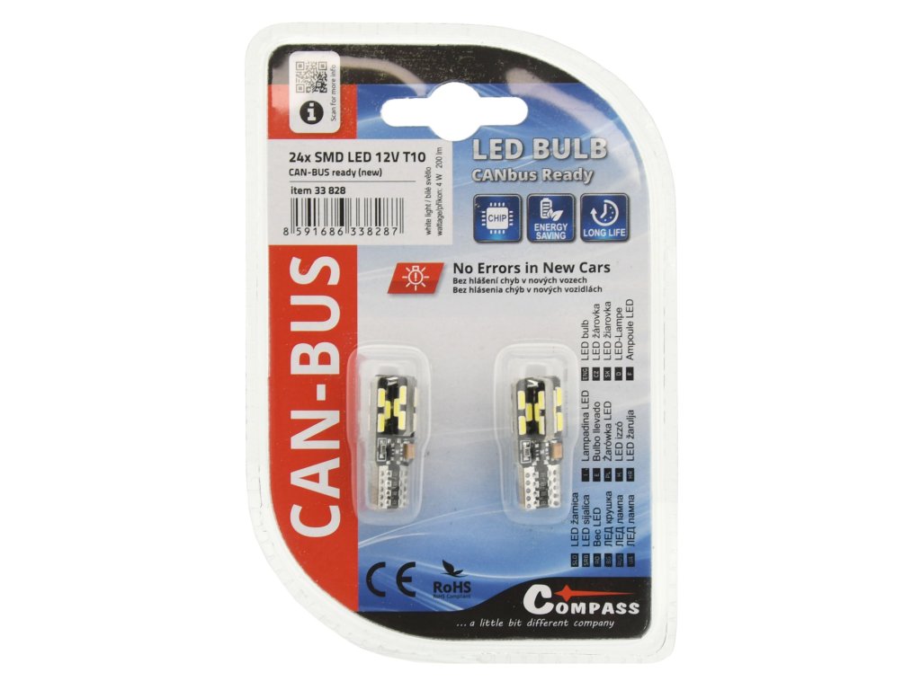 Žárovka 24 LED 12V T10 NEW-CAN-BUS bílá 2ks