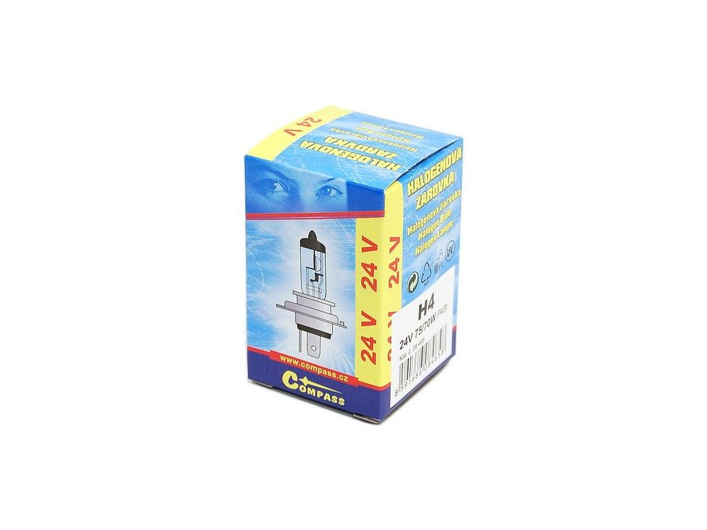 Halogenová autožárovka 24V, homologace E. Sklo žárovky s UV filtrem - žárovka je vhodná pro všechny druhy světlometů.