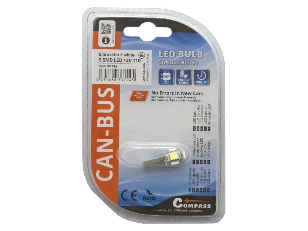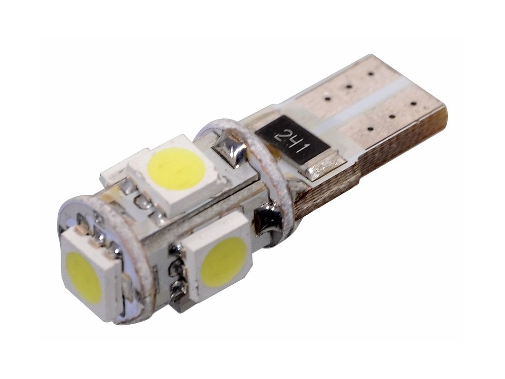 Žárovka 5 SMD LED 12V T10 s rezistorem CAN-BUS ready bílá