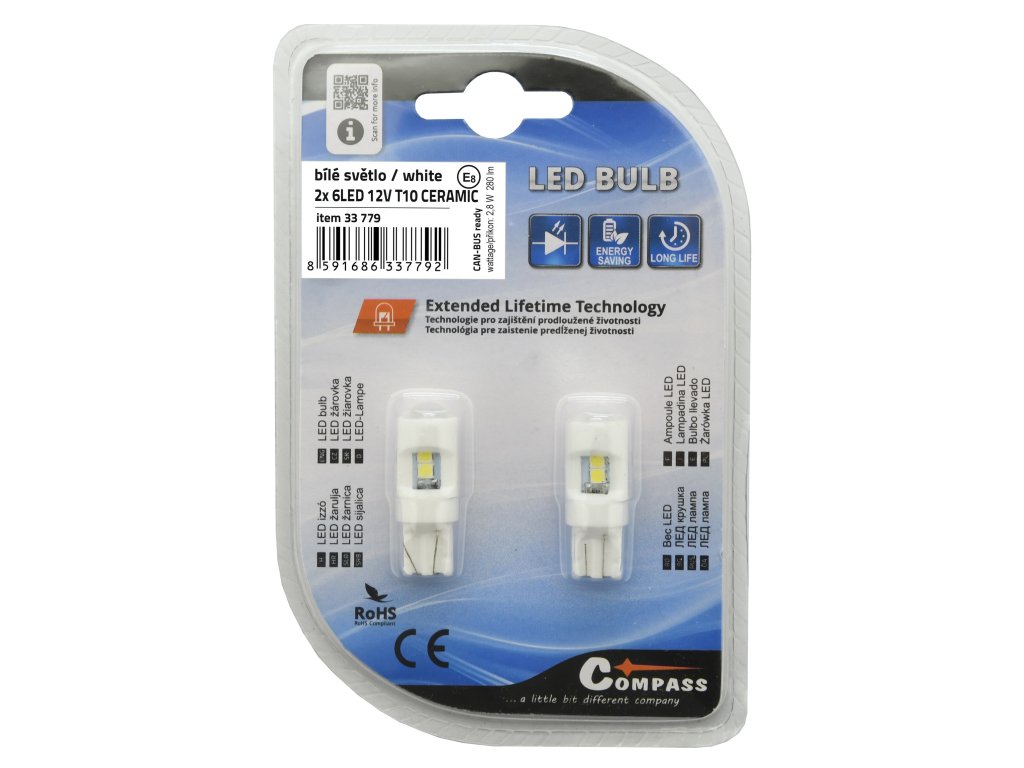 Žárovka 6LED 3030 12V T10 CERAMIC s rezistorem CAN-BUS ready bílá 2ks