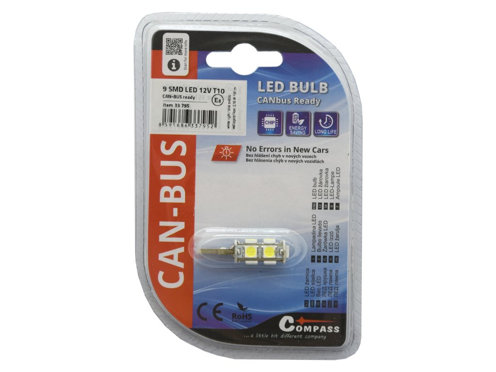 Tato LED žárovka je vybavena funkcí CAN-BUS ready (zabudovaný rezistor), zabraňuje signalizaci prasklé žárovky u novějších automobilů s kontrolou stavu žárovek řídící jednotkou vozu.