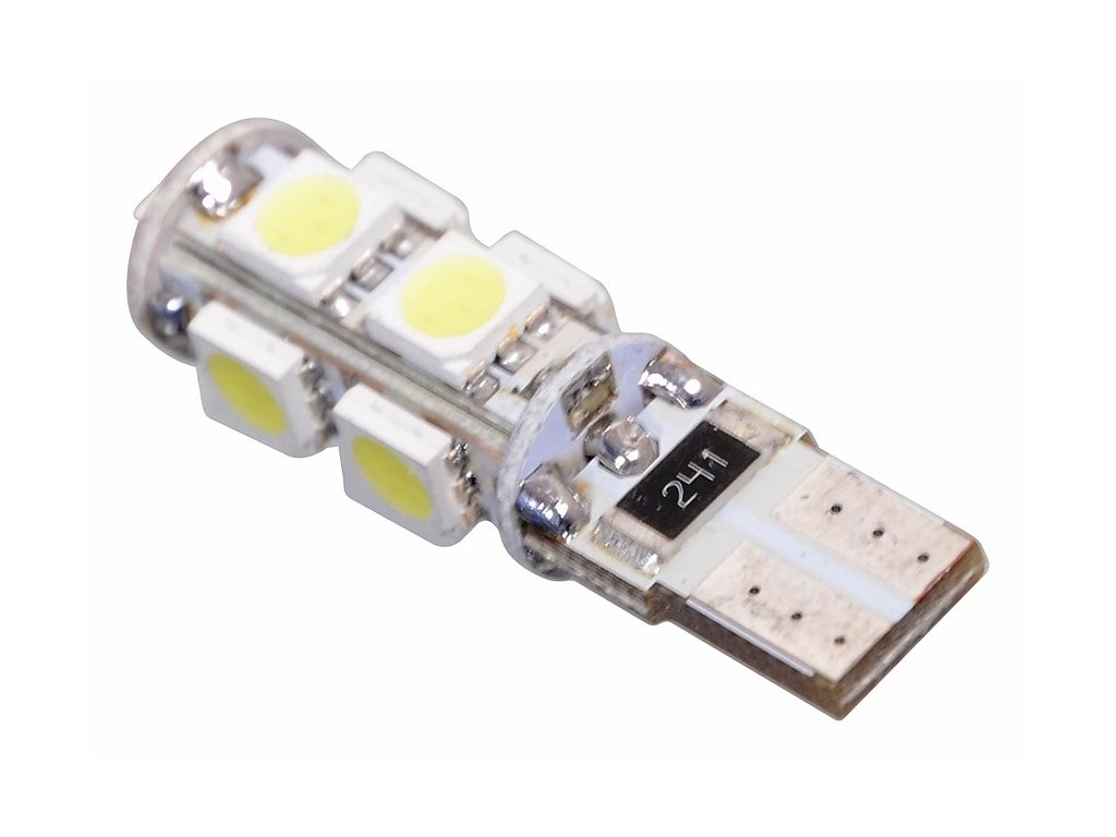 Žárovka 9 SMD LED 12V T10 s rezistorem CAN-BUS ready bílá