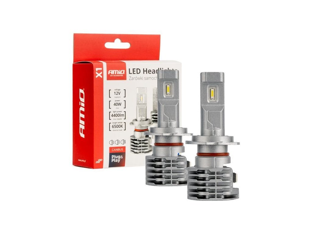 Žárovka LED H7 řady X1 6500K Canbus AMIO VLASTNOSTI:Jasnější a koncentrovanější světlo