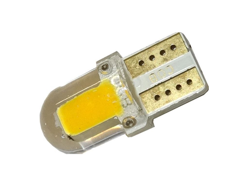Žárovka LED T10 12V žlutá, COB, silica **Specifikace:**Napájecí napětí: 10-14DC
