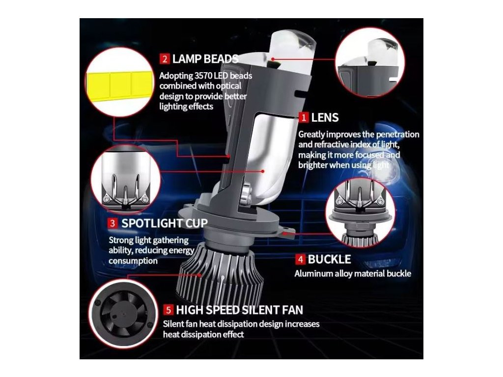 Žárovky LED H4 M01K 10-30V bílé, pár Autožárovky LED do hlavních světel s funkcí tlumených a dálkových světel.**Specifikace:**