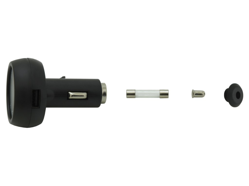 Adaptér, pomocí kterého se nabíjejí USB zařízení z 12V, či 24V zásuvky automobilového zapalovače.
