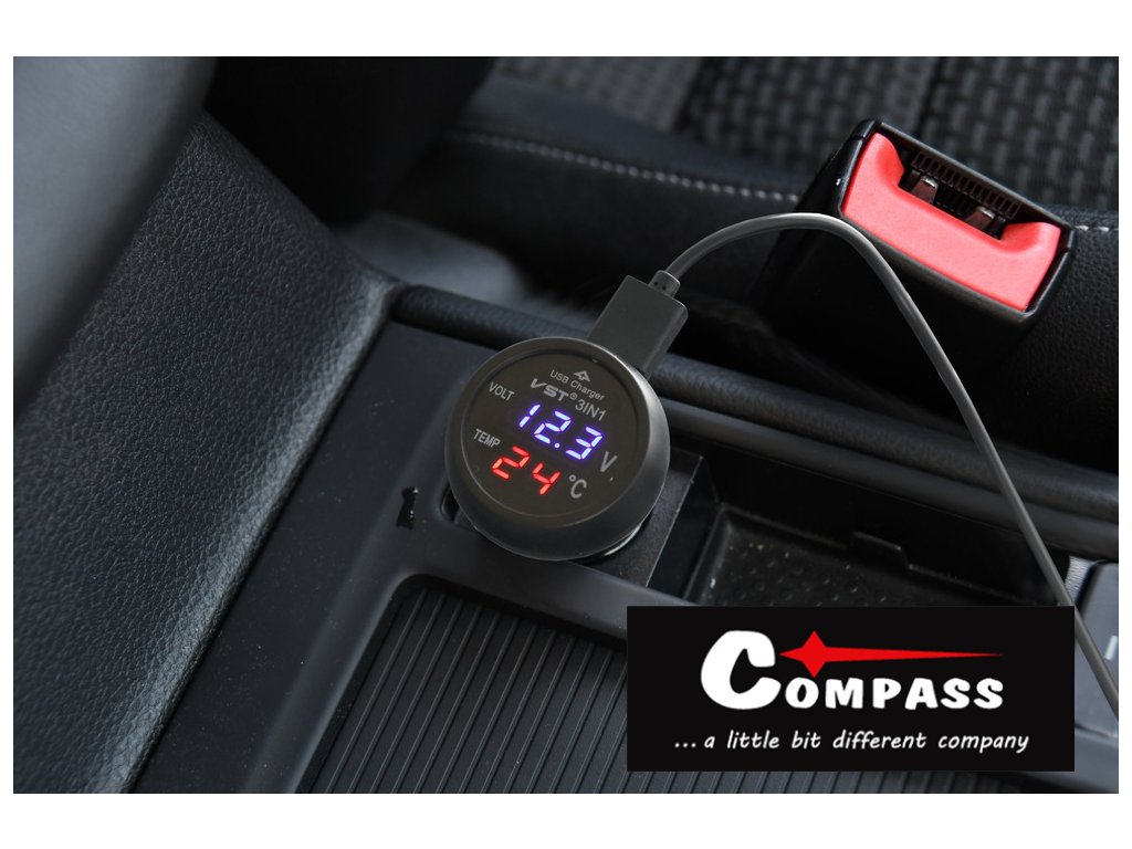 Zástrčka MULTI - USB, voltmetr, teploměr