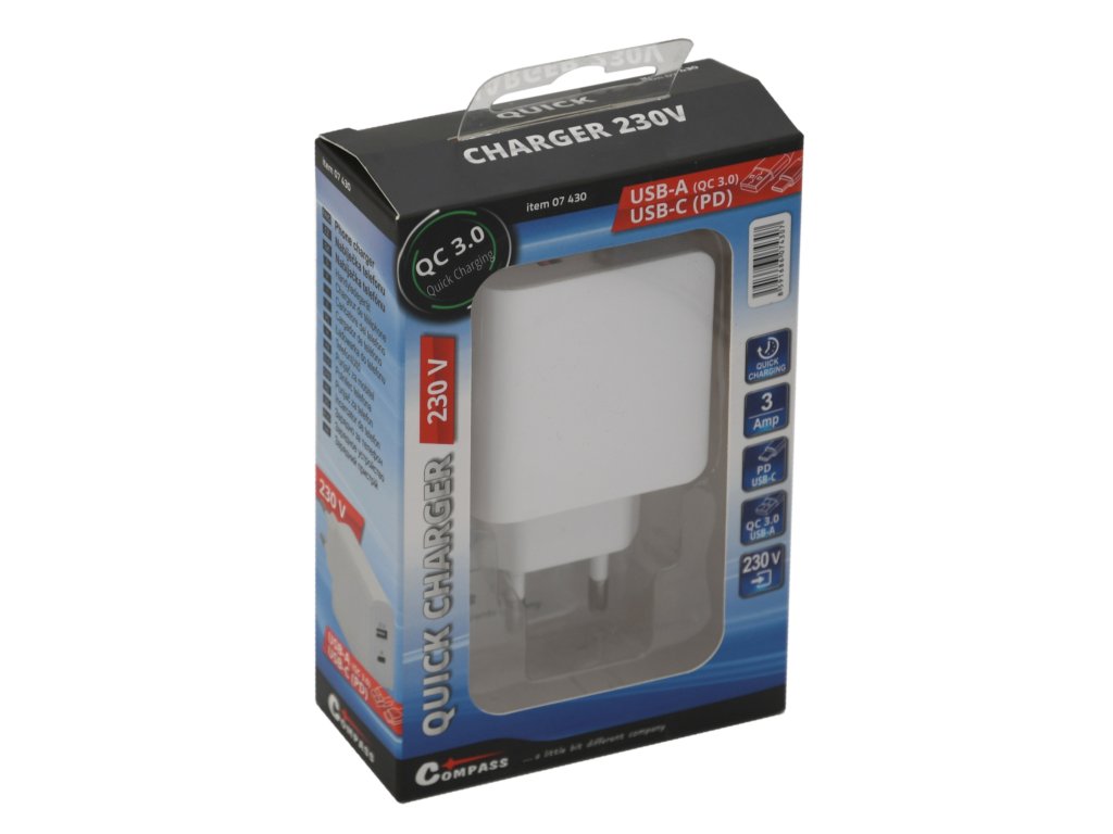 Zástrčka QUICK CHARGE 3.0 230V USB-A / USB-C 18W