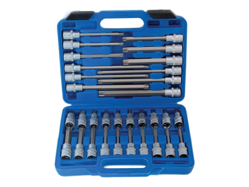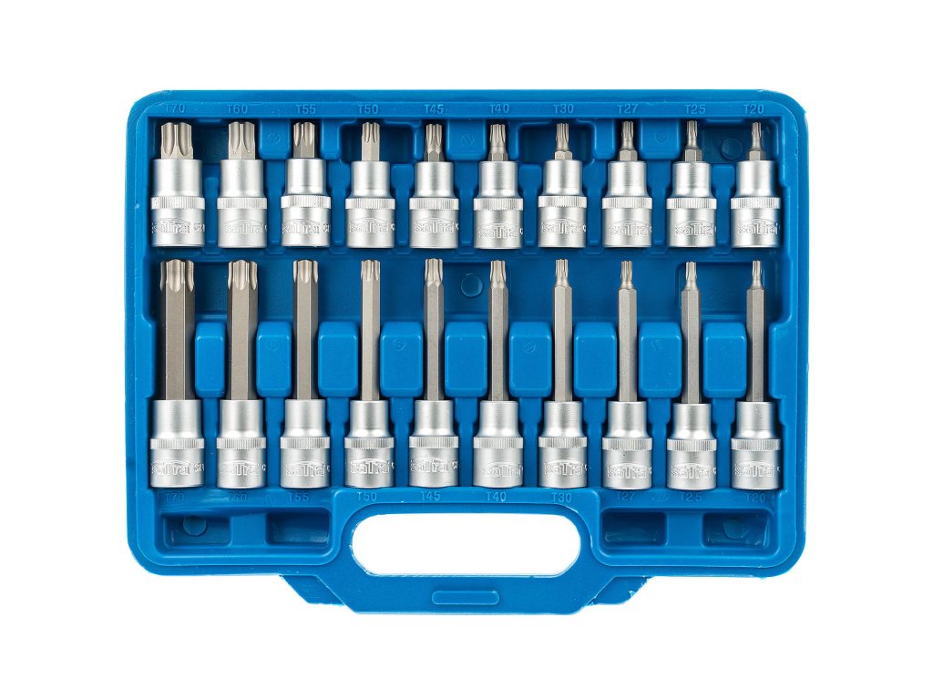 Zástrčné hlavice TORX 1/2", standardní, prodloužené a extra dlouhé, T20-T70, 32 ks - SATRA