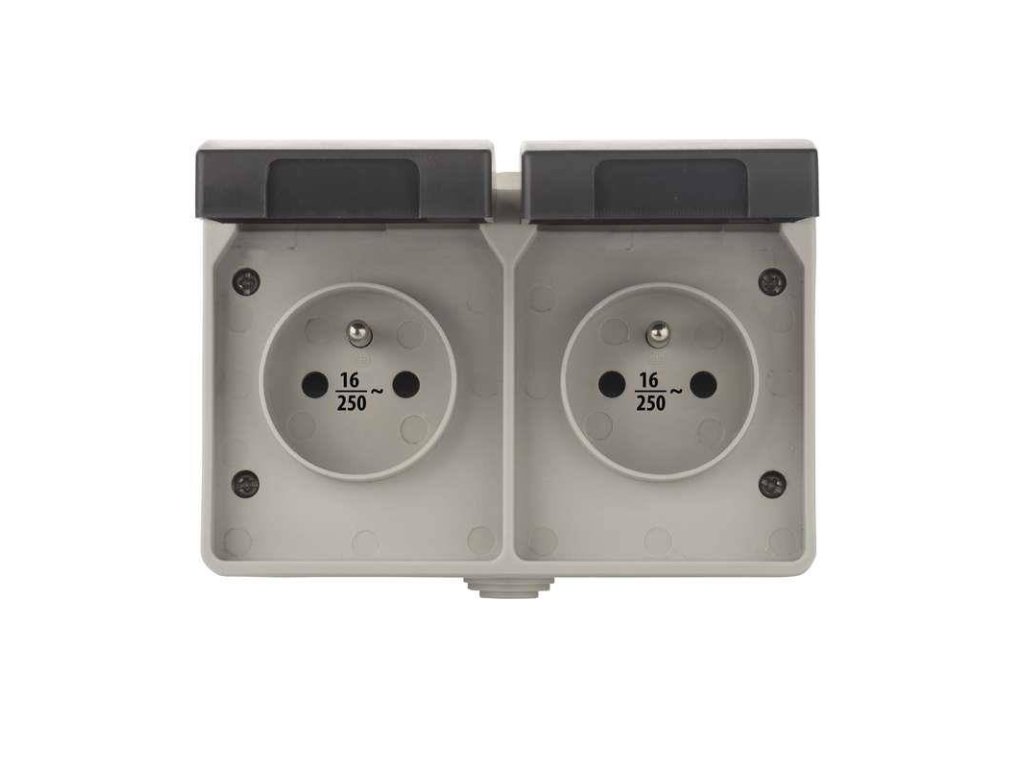 Zásuvka nástěnná dvojitá, 250V / 16A, IP44
