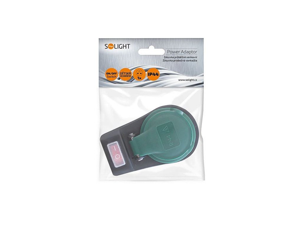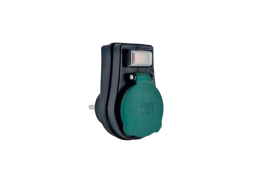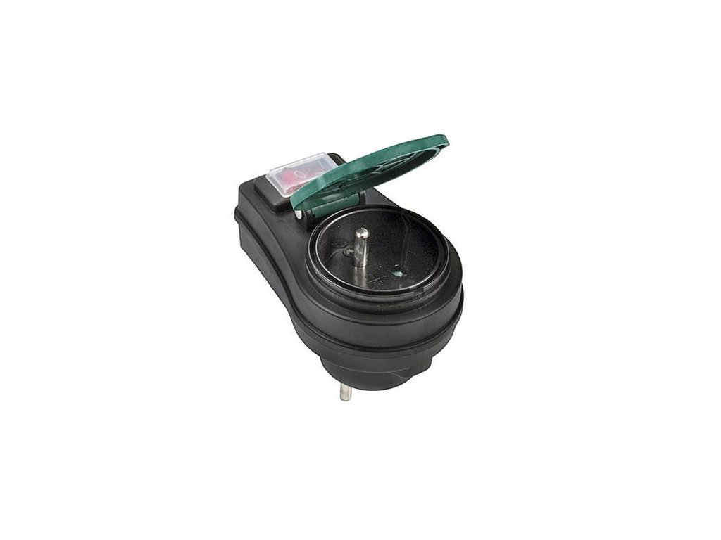 Zásuvka průběžná IP44, 16A, černá, vypínač, kryt zásuvky
