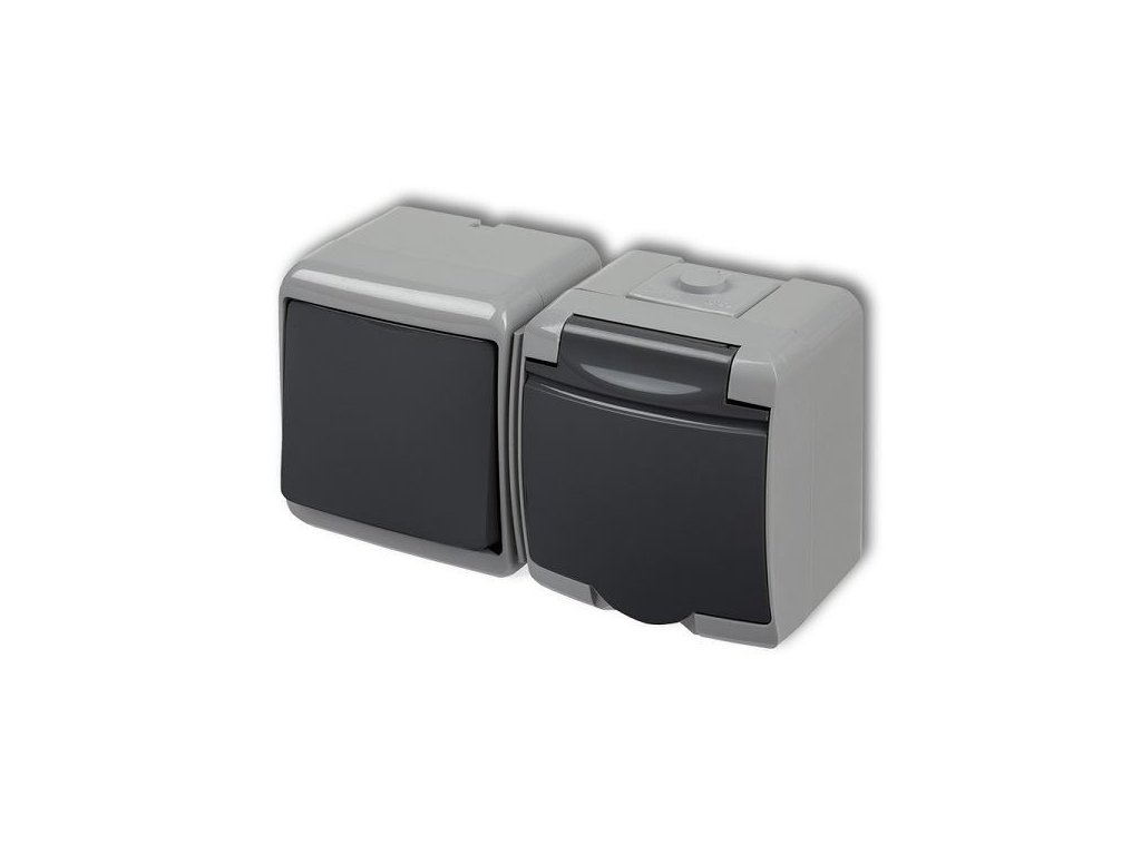 Zásuvka s vypínačem č.1, IP54, grafitová, Karlik 250V/16A, vypínač 250V/10AManuál k produktu je ke stažení zde