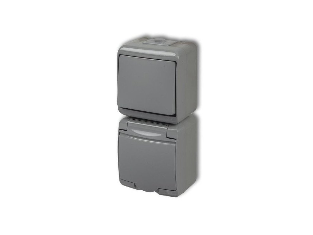 Zásuvka s vypínačem č.1, IP54, šedá, vertikalní, Karlik