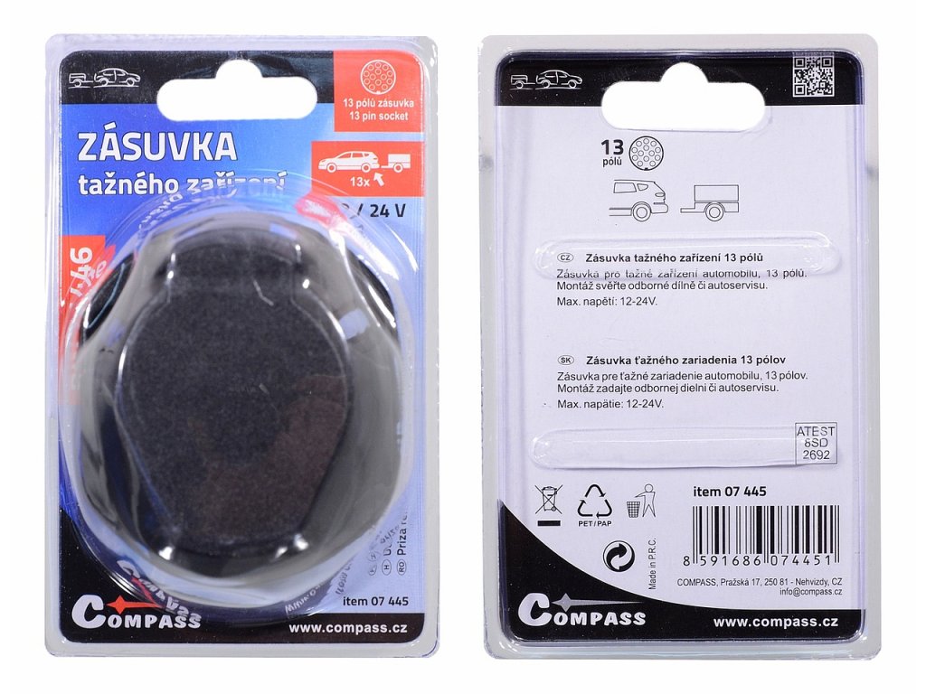 Zásuvka pro tažné zařízení automobilu dle normy DIN 11446, 13 pólů.