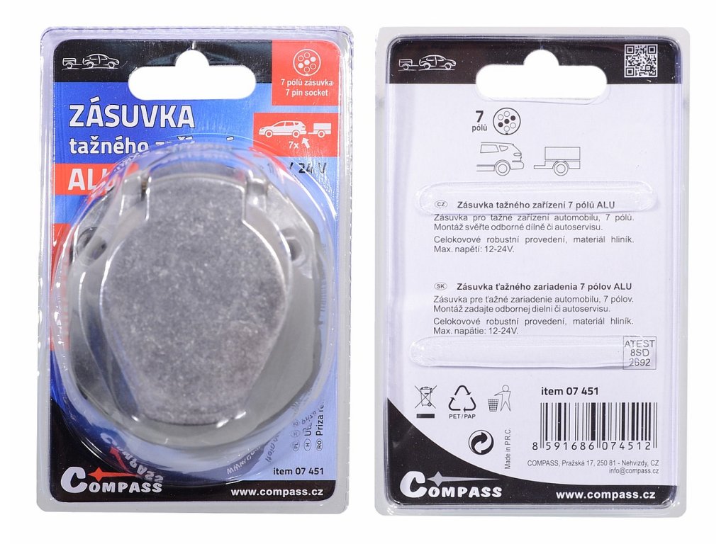 Celokovová ALU zásuvka pro tažné zařízení automobilu dle normy DIN 1724, 7 pólů.