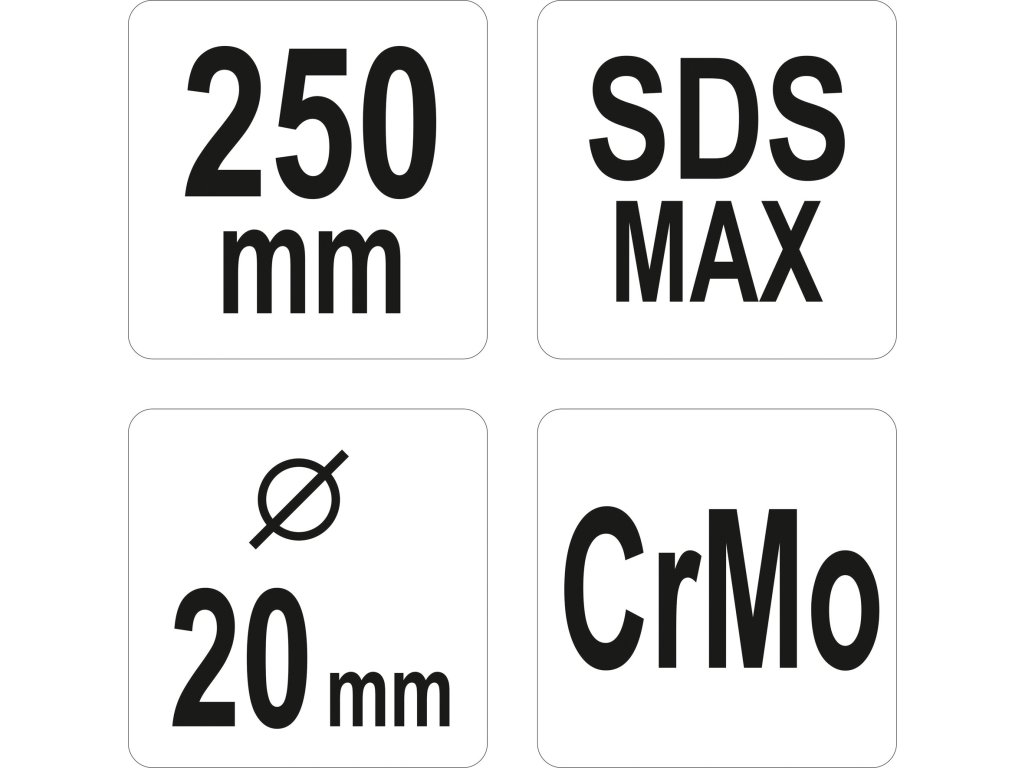 Nástroj je přizpůsoben pro práci s vrtacími kladivy sds max, např. yt-82131 nebo yt-82135. Vyrobeno z oceli odolné proti deformaci.