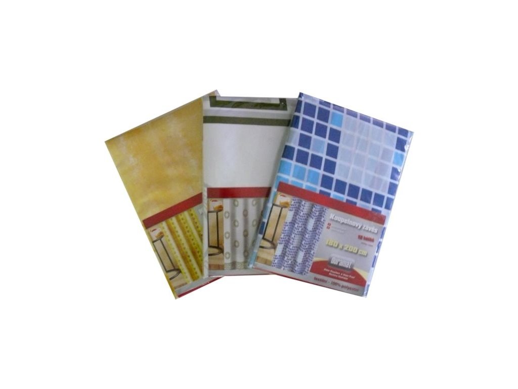 Koupelnový textilní závěs vyrobený ze 100% polyesteru.Velmi jednoduché a praktické řešení místo sprchového koutu, vanové zástěny nebo sprchových dveří.
