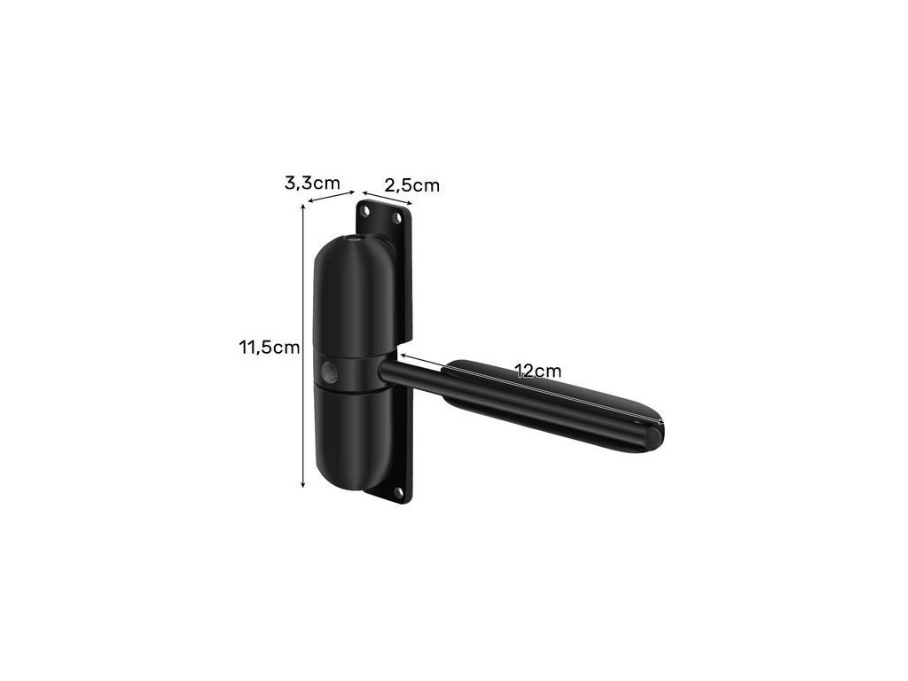 Zavírač dveřní do 60 kg černý, Malatec Dveřní zavírač pro interiérové dveře. Nastavitelná rychlost zavírání a doklapu. Určeno pro váhu dveří max. 60kg. Podle potřeby lze montovat jak na dveře, tak i na zárubeň.Dveřní zavírač lze použítpro vnitřní i vnější dveře, pravé nebo levé, s maximální hmotností do 60 kg.