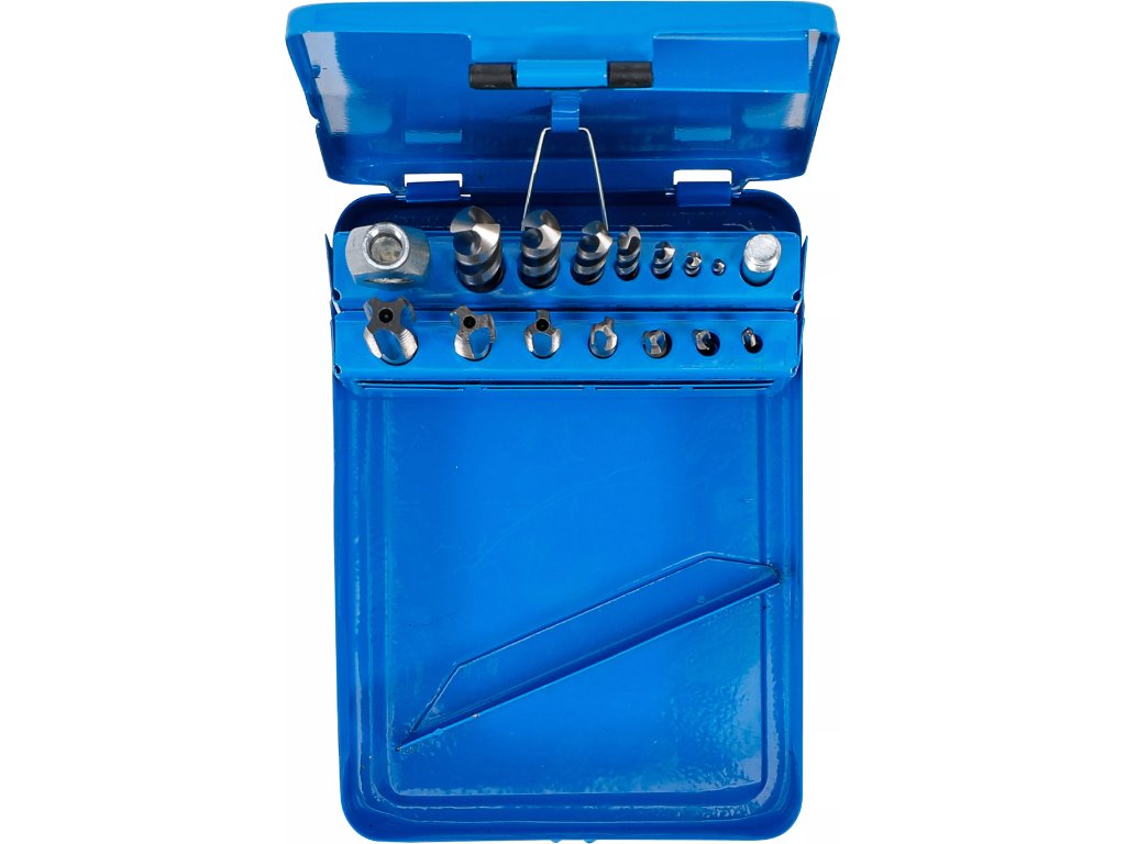 Celá sada je přehledně uložena v kovovém pouzdře.