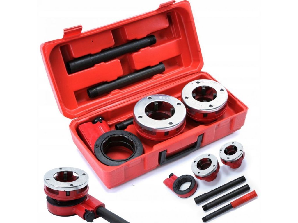 Závitníky v palcové soustavě určené na řezání závitů na potrubí. Sada obsahuje 2 litinové závitníky s 4 noži z nástrojové oceli, ráčnovou hlavu a dvojdílnou rukojeť. Vše uloženo v plastovém kufříku.