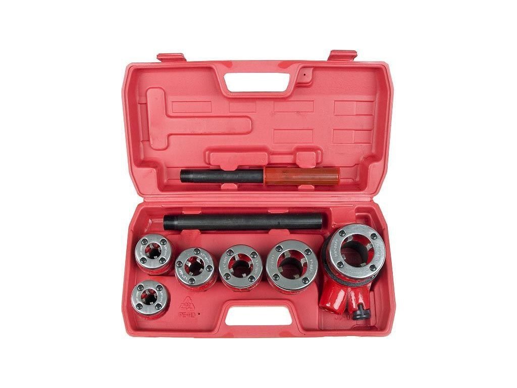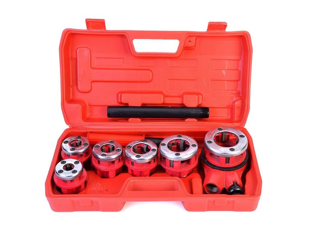 Závitníky R trubkové BSPT – 6dílná sada MAR-POL. Praktická sada závitníků MAR-POL pro řezání kuželových trubkových závitů typu BSPT (British Standard Pipe Taper) je vhodná pro domácí dílnu, hobby použití a základní instalatérské práce. Obsahuje 6 litinových hlavic s čtyřmi řeznými noži, ráčnovou hlavu a dvoudílnou rukojeť o délce 50 cm – vše uloženo v plastovém kufříku pro snadné přenášení.