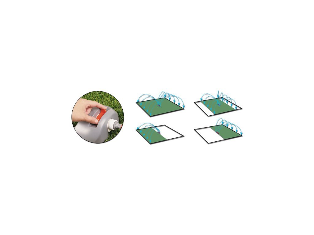 Posuvné jazýčky umožňují snadné a rychlé nastavení dosahu zavlažování podle potřeb. Ať už zavlažování úzkého pruhu trávníku nebo zahradní plochy, tento zavlažovač to zvládne bez obtíží.