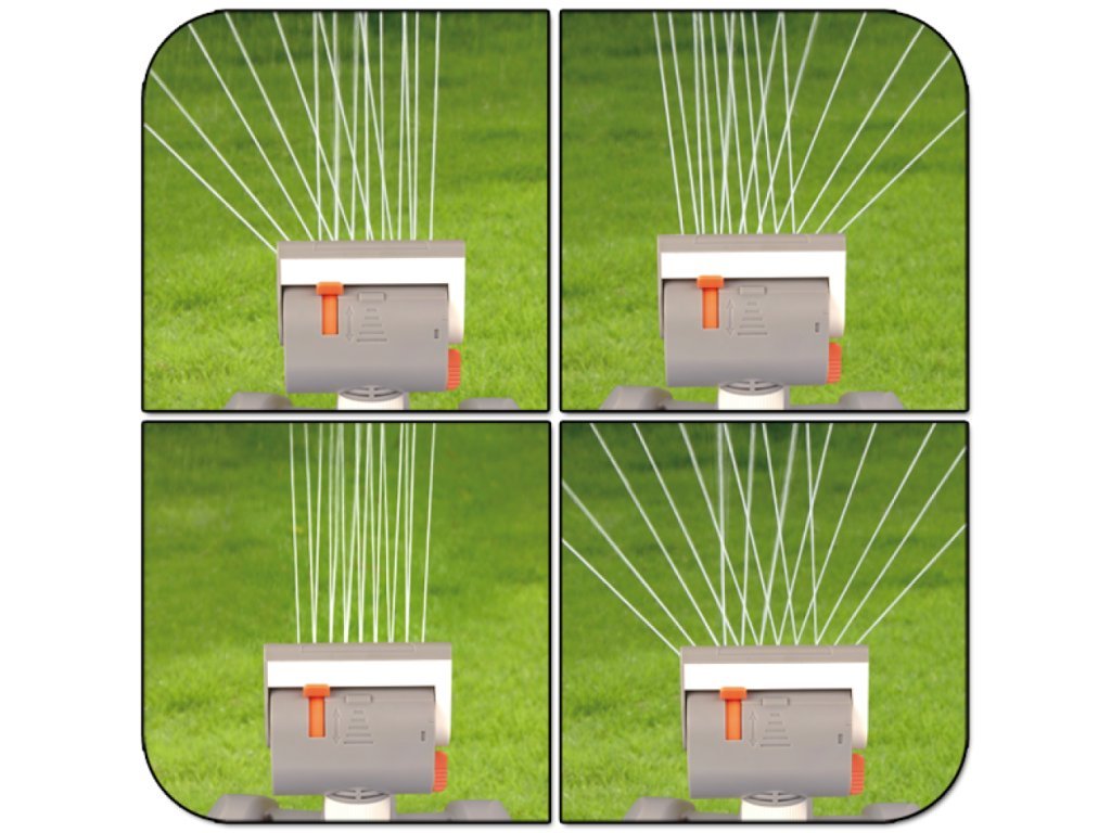 Nastavitelná šířka, dosahu a směru postřiku pomocí posuvných páček dává naprostou kontrolu nad tím, kam bude voda nasměrována.