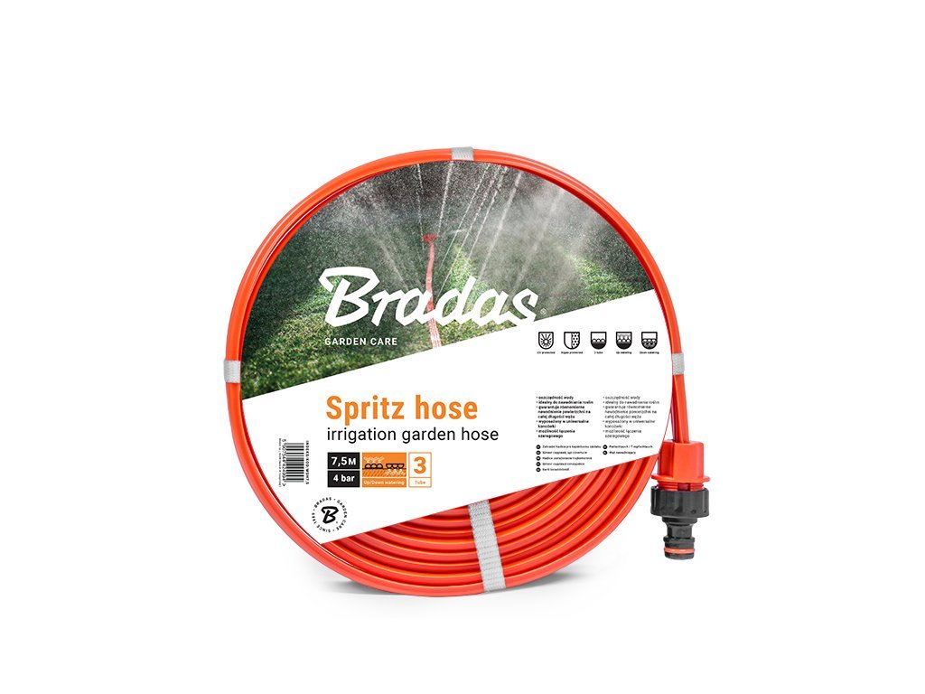 Tříkanálová zavlažovací hadice o průměru 1/2" a délce 15 metrů. Zavlažování probíhá na způsob malých fontánek nebo při obráceném použití přímo do zeminy. Šetří váš čas i spotřebu vody. Vhodné zejména pro zavlažování zahrad, trávníků nebo květinových záhonů atd. Konce jsou osazeny armaturou z vysoko jakostního PVC kompatibilní se všemi systémy rychlospojek.