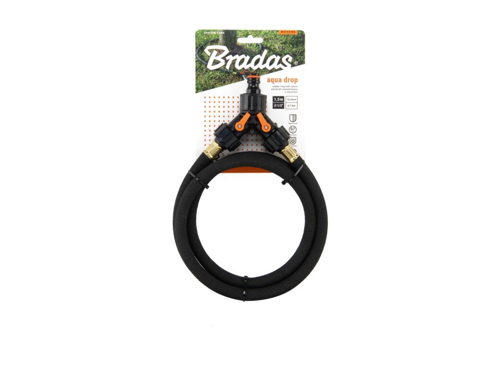 Zavlažovací kapací hadice AQUA-DROP, 1,5 m 1/2", s ventily, kruhová - BRADAS