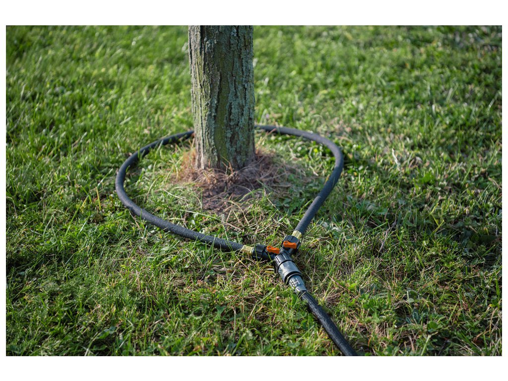 Ventily slouží nejen k regulaci průtoku vody, ale hlavně k zastavení vody při přemístění - například když je kruhová hadice umístěna kolem kmene stromu, přívod vody se zastaví pomocí ventilů a není třeba jít až k vodovodnímu řádu. Díky kruhovému tvaru dokáže hadice rovnoměrně pokrýt celou zavlažovanou plochu a zajistit tak optimální distribuci vody.