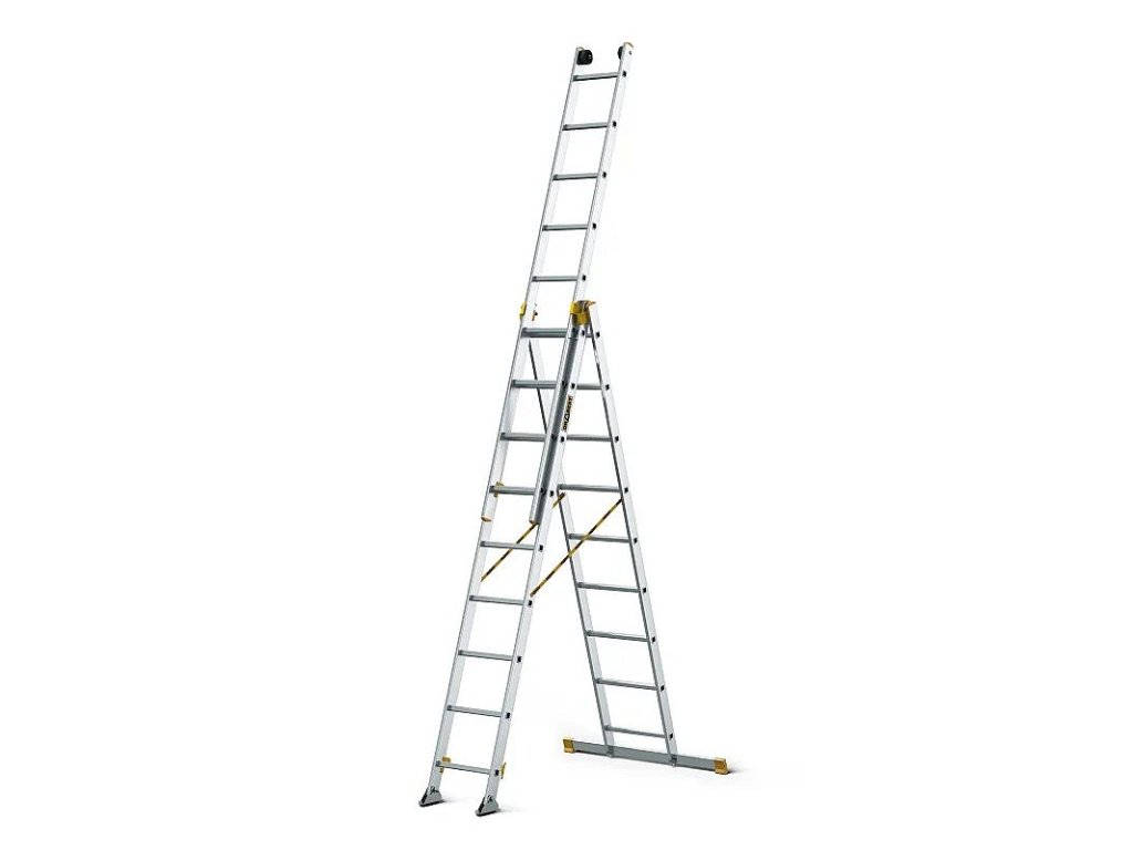 Možnost rozložení žebříku v nakloněné, samostatně stojící poloze a s vysunutým třetím prvkem