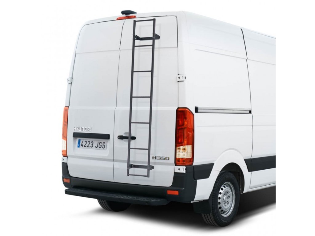 Žebřík 180cm na zadní dveře užitkových vozidel se stavitelným umístěním podpor.Nelze umístit na vozy s prosklenými dvěřmi!