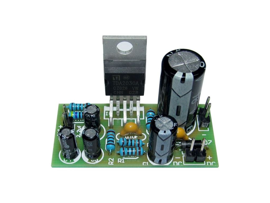 Zesilovač 18W s TDA2030, STAVEBNICE Napájení:9-30V, výstupní impedance: 4-8 ohm, jednoduché zapojení s minimem externích součástek, tepelná ochrana, rozměry DPS 40x20mmManuál k produktu je ke stažení zde